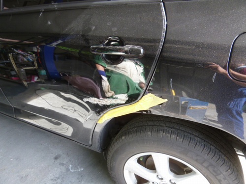 だいじょうなほうの右ドアを観察、同じ形にまずはスタッド溶接機で